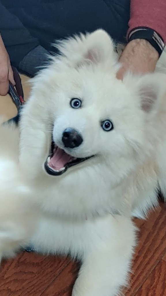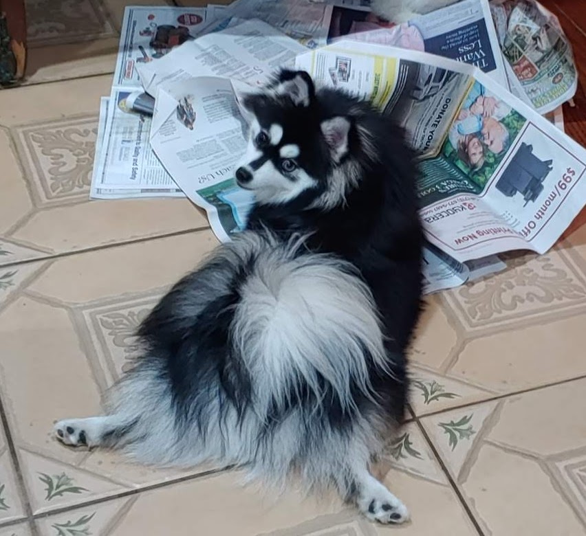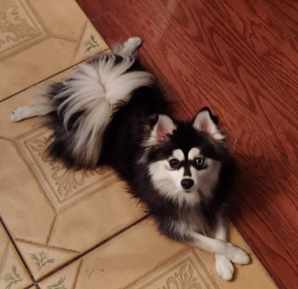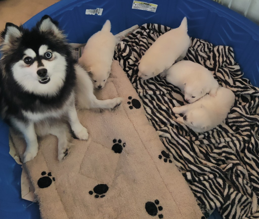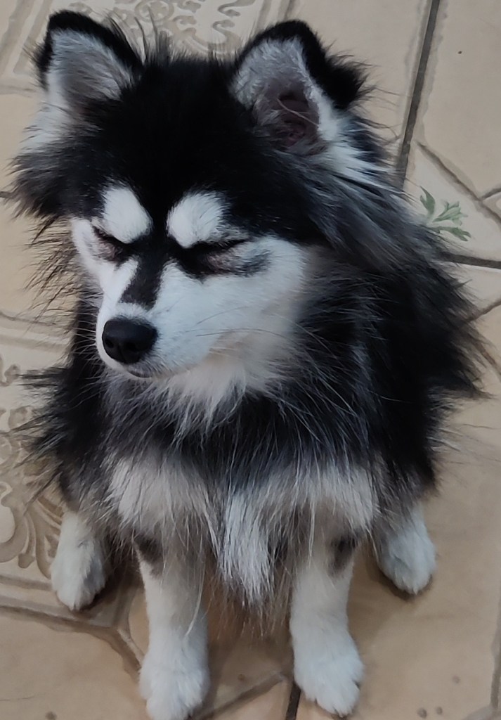 Available Pomsky Black and White Beautiful blue eyes . Born July 27, 2022 Sold